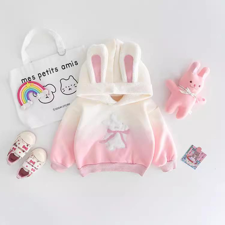 セットアップ 女の子 ベビー服 裏起毛 厚手 暖かい うさ耳 フードパーカー ロングパンツ 韓国子供服 秋冬 かわいい 2点セット ルームウェア 普段着 コットン 柔らか素材 ピンク
