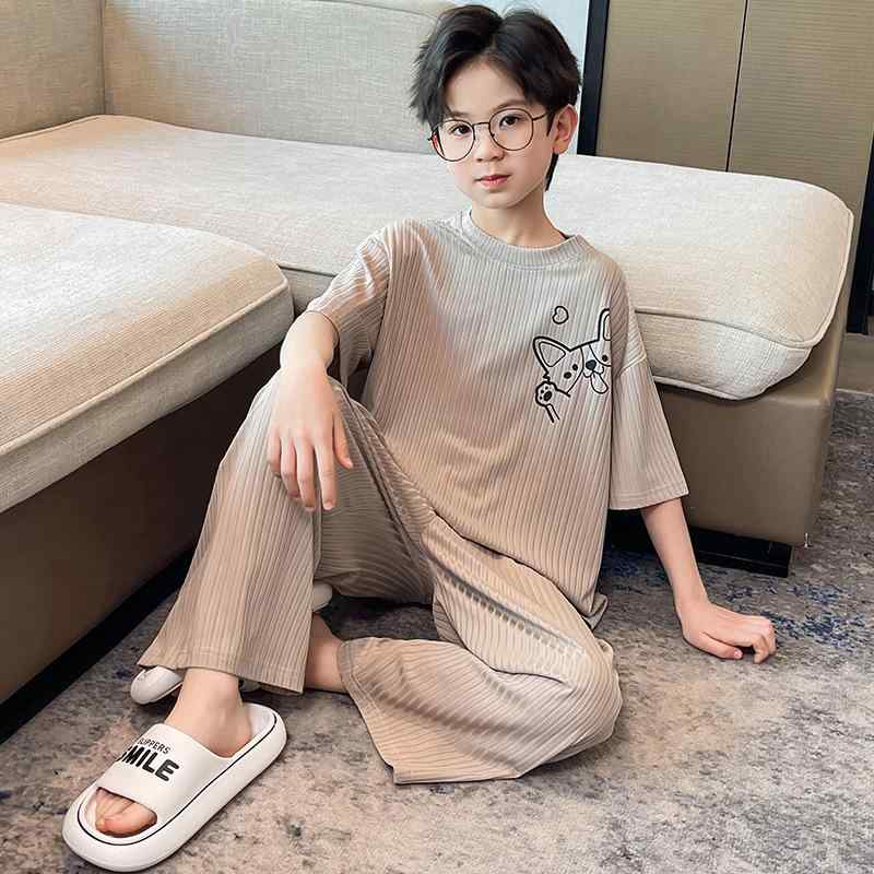 パジャマ 男の子 キッズ ジュニア 接触冷感 吸汗速乾 薄手 ルームウェア 夏用 上下セット 部屋着 寝間着 エアコン対策 カジュアル おしゃれ ポリエステル混
