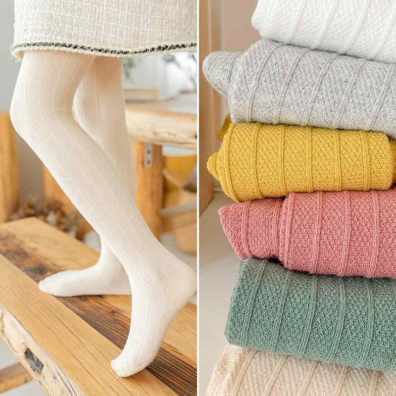 子供用靴下 ガールズ連体ストッキング 春秋 精梳綿 キャンディカラー ケーブル編み リボン 薄手 通気性 吸汗性 白 黒 緑 ベージュ ピンク グレー 黄色 S M L XL