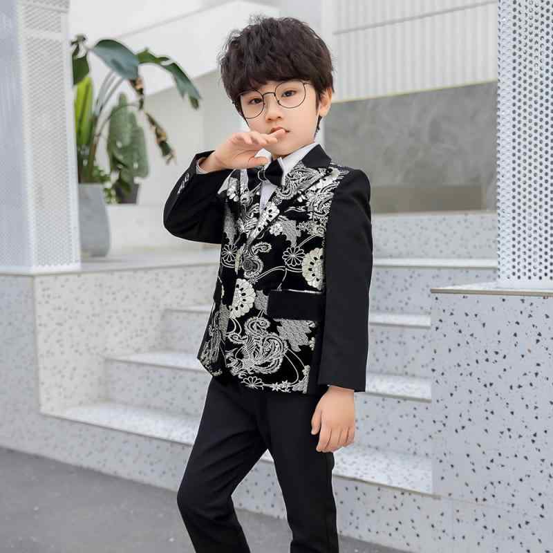スーツ 男の子 キッズ 秋冬 韓国風 イギリス風 プリント 箔押し ジャケット フォーマル セレモニースーツ ポリエステル 発表会 演奏会 結婚式 フラワーボーイ 誕生日 入学式 卒業式