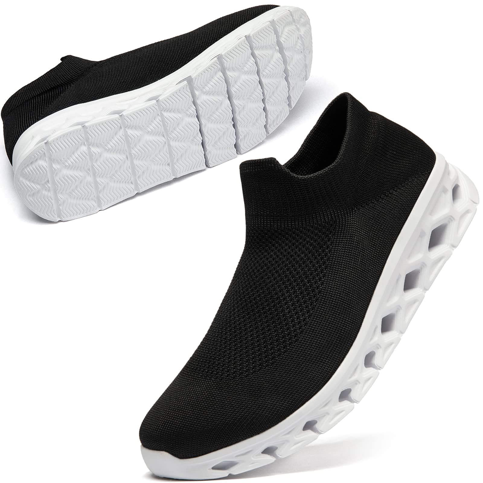 【送料無料】[MERPHINE] エアー スニーカー 【立ったまま履ける】手を使わず履ける メンズ 脱ぎ履きしやすい ランニングシューズ 軽量 運動靴 黒 メッシュ エアクッション 3E スリッポン お 色:ブラックホワイト(0.5cm大きめをお勧めいたします)、サイズ:23.0 cm 3E