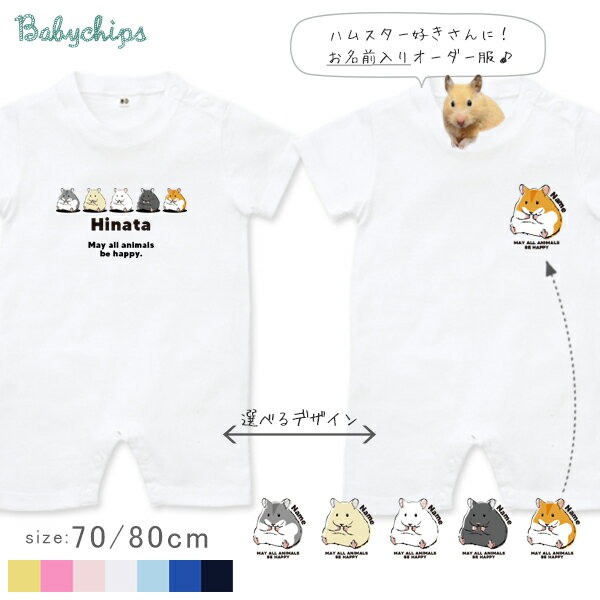 ハムスター 名入れ 半袖 カバーオール ロンパース [ハムスター] ゴールデンハムスター ペット ジャンガリアン お誕生日 プレゼント オリジナル 誕生日 ベビー こども服 ベビー おそろい 兄弟 姉妹 リンク お出掛け 帰省 旅行 出産祝い なつ サマー sr