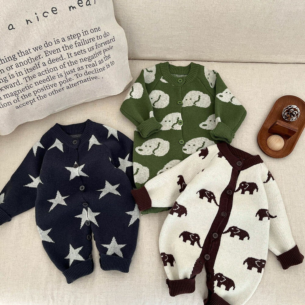 【6%OFFクーポン】ベビー服 ニット ロンパース 新生児 男の子 女の子 長袖 ゾウ 星 犬 ボタン 赤ちゃん 子ども服 可愛い 歩行服 ジャンプスーツ 秋冬 パジャマ ルームウエア 普段着 人気 カバーオール キッズ 新年 文化祭 撮影 出産祝い 子供服 66cm 73cm 80cm 90cm 100cm
