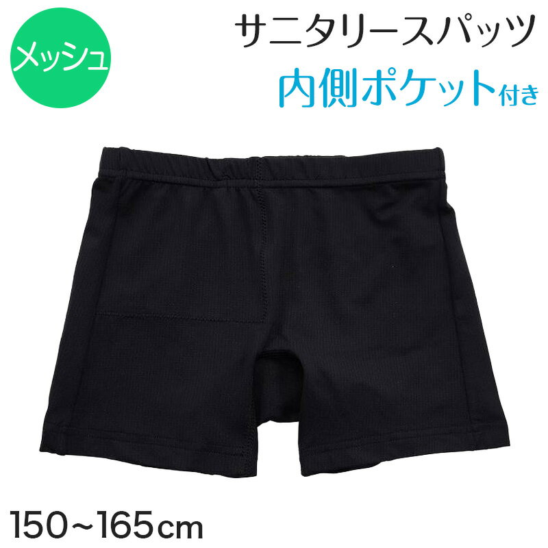 サニタリー スパッツ 一分丈 メッシュ ジュニア ポケット ドライ 速乾 インナーパンツ 夏用 中学生 高校生 150〜165cm 女の子 女子 カバーパンツ レギンス アンダーパンツ 黒 スカート下 子供 重ね履き