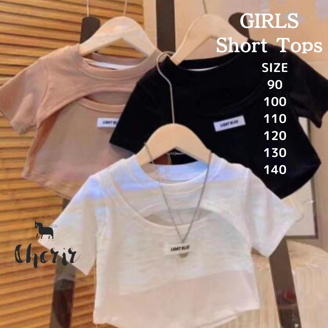 【対象商品C】キッズ トップス クロップド丈 ショートTシャツ 半袖 Tシャツ ショート お腹見せ ダンス 韓国ファッション 韓国子供服 kpop オルチャン アイドル tiktok インスタ へそ出し 肌見せ 女の子 90 100 110 120 130 140 ブラック ホワイト ベージュ