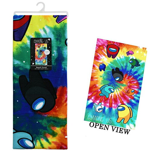 アモングアス ビーチタオル 19655 Among us バスタオル タオル マイクロファイバー レジャー タイダイ柄 ゲーム ゲームキャラ キャラクター グッズ 海外 輸入品 インポート AMBE