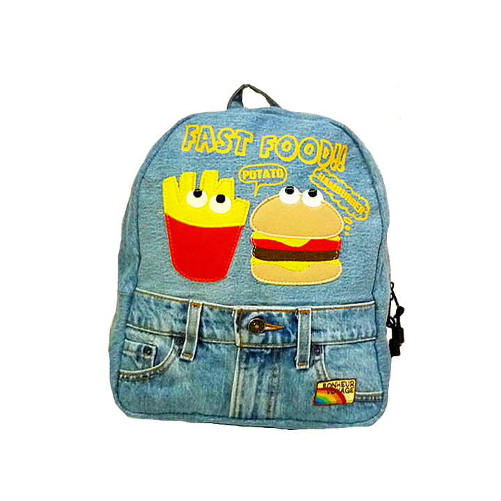 【送料無料】USED DENIM ポテバーガー デイパック キッズ ・(子供リュック)・お出かけや遠足が楽しくなる子供用リュックサック、幼稚園、保育園の通園、小学校の男の子女の子キッズにもおすすめなかわいい ブルドッグ柄バックパックです!