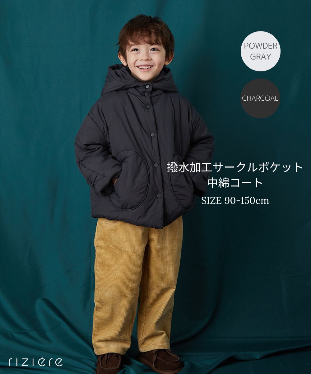 【NEW】【riziere】撥水加工サークルポケット中綿コート(フード取り外し可能)キッズ 男の子 女の子 子供服 おしゃれ 春 秋 冬 無地 アウター あったか 羽織り シンプル ジャンパー ナチュラルカラー ベーシック 幼児 保育園 小学生 通園 通学 幼稚園 小学校 低学年 高学年