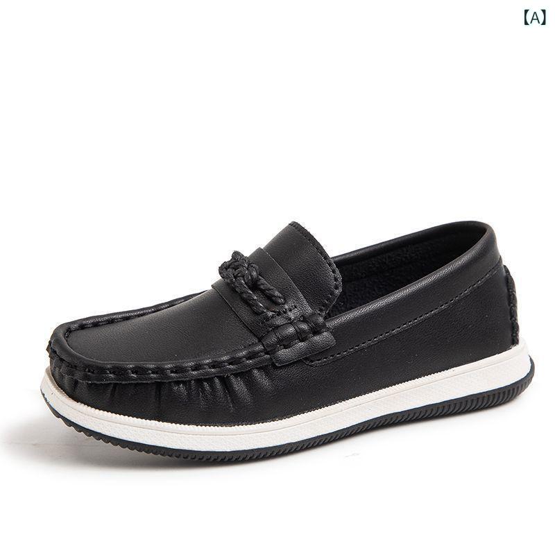 シューズ 男の子 キッズ ジュニア モカシン スリッポン ローファー レザー調 合皮 ブリティッシュ カジュアル 軽量 ソフト 滑り止め 通学 普段使い オールシーズン 黒 茶