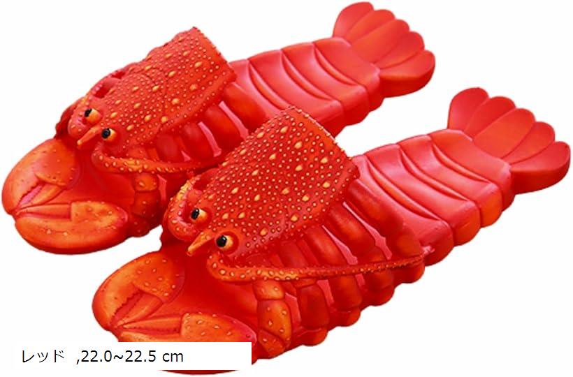 ビーチサンダル キッズ おもしろ ロブスター ザリガニ 海老 スリッパ ビーサン 川 キャンプ (レッド, 22.0~22.5 cm)