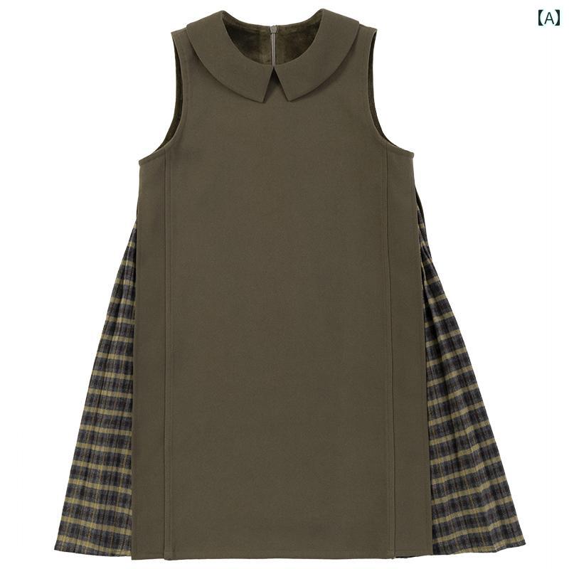 女の子 ワンピース おしゃれ レトロ チェック柄 キッズ かわいい ノースリーブ 秋 襟 大人っぽい エレガント パーティー アウトドア