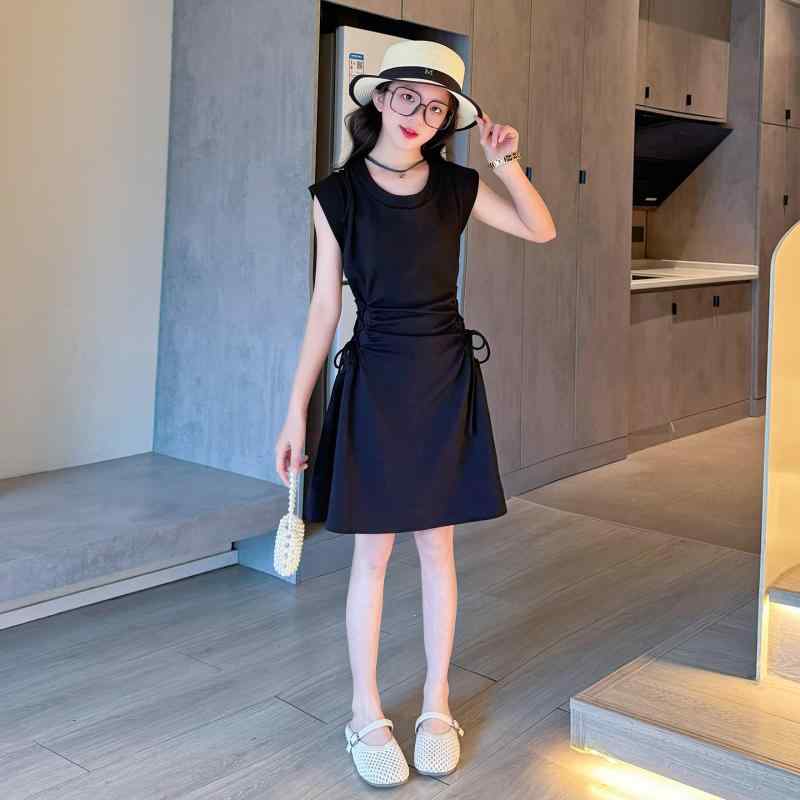 ワンピース ノースリーブ サマードレス 女の子 美しい スリミング ティーンエージャー 夏 ガーリー キュート おしゃれ カジュアル 通学 デイリーユース