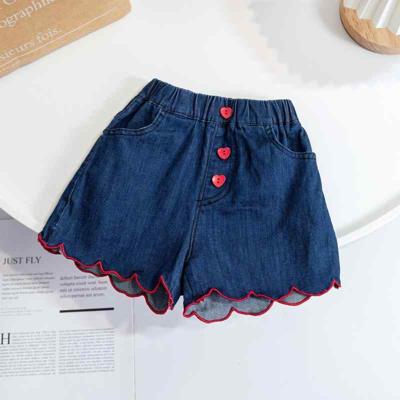 キッズ 女の子 春夏 デニム ショートパンツ ハート柄 綿 コットン 着回し抜群 カジュアル 韓国 おしゃれ かわいい ミドルウエスト ボトムス