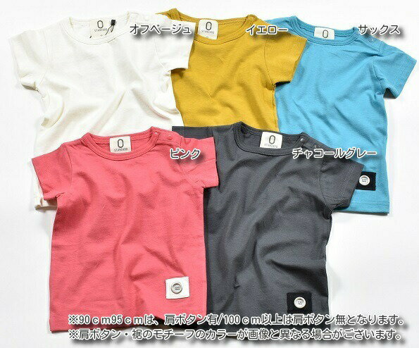 ★0 STANDARD/ゼロスタンダード ★天竺素材の子供用半袖Tシャツ ★柄無しのデザインなので、柄物とのコーディネートに便利 柄のシャツのインナーにも便利な半Tです シンプルなデザインで、男の子も女の子もok! 裾のリング、ロゴがポイントです。 ※裾のモチーフのカラーが異なる場合がございます。 ※肩ボタンは、リングタイプ(金具)となります。 画像と異なります。 【サイズ90】身長90cm 体重13Kg(肩ボタン有) 【サイズ95】身長95cm 体重14Kg(肩ボタン有) 【サイズ100】胸囲49〜55cm 【サイズ110】胸囲53〜59cm 【サイズ120】胸囲57〜63cm 【QUAL.】本体/綿100% リブ部分綿95% ポリウレタン5% ★中国製 ベビールーム株式会社/baby room co.,ltd キッズトップス 子供服 子供用半袖Tシャツ 夏服 夏用服 男児半袖Tシャツ 女児半袖Tシャツ