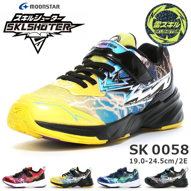 【期間限定クーポンあり】ムーンスター スキルシューター スニーカー キッズ 男の子 ローカット 2E マジックテープ 歩きやすい 走りやすい かっこいい 雷スキル ジンライ 軽量 小学生 ジュニア 通学 子供 子ども 運動靴 シューズ 靴 0058【2411L】