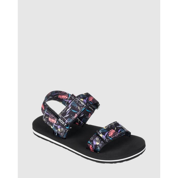 ロキシー Roxy 【 Girls 8-16 Cage Sandals Girls Black Print 】 サンダル キッズ ベビー マタニティ キッズファッション 靴 サンダル ジュニア キッズ 黒色 ブラック