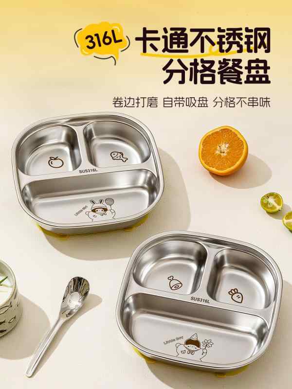 ベビーフードトレイ 子供用 ダイニング トレイ 316 L ステンレス スチール製 コンパートメント 吸盤 付き ベビー フードトレイ 幼児 幼稚園