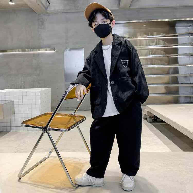 子供用スーツ パンツセット 男の子 中童 大童 半袖 短パン 綿 薄手 韓国風 2点セット ブラック カーキ 120cm 130cm 140cm 150cm 160cm 170cm