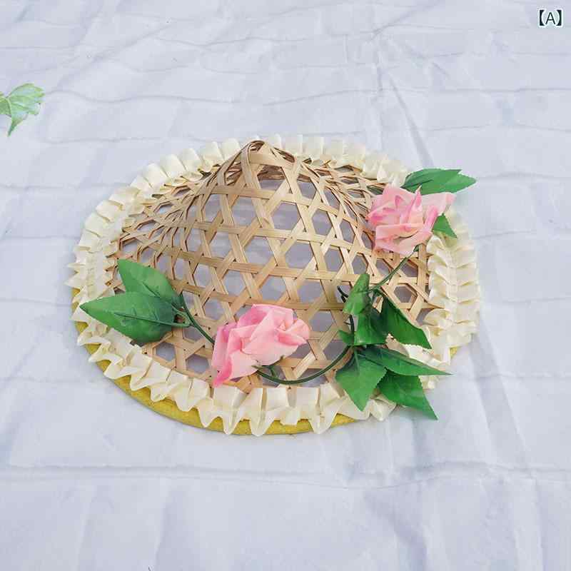 麦わら帽子 キッズ ダンス 舞台 演出 幼稚園 保育園 竹編み 大判 ハット 子供用 大人用 花柄 透かし彫り 春