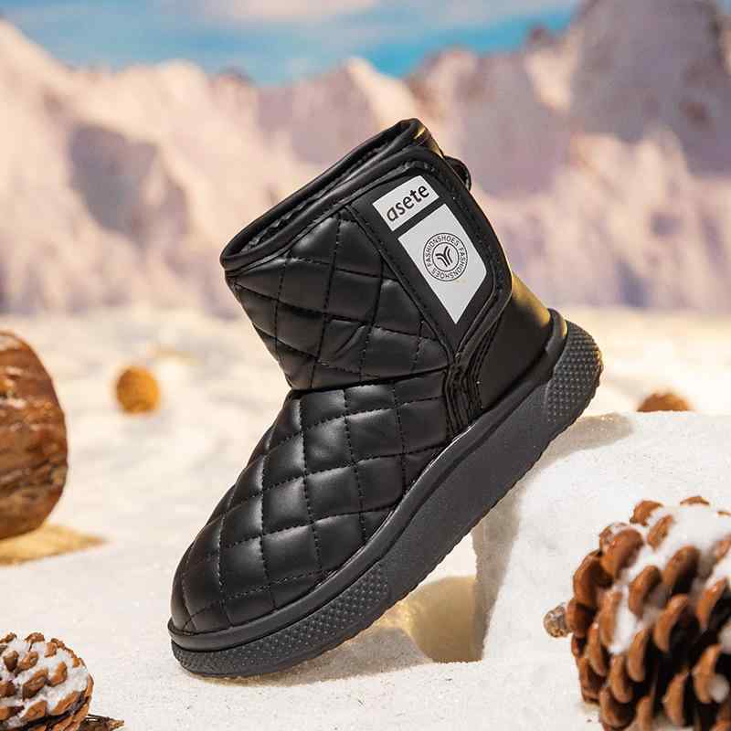 ブーツ キッズ 子供用 防寒 雪靴 スノーブーツ 男の子 女の子 ローカット 厚底 面ファスナー カジュアル ブラック ベージュ系