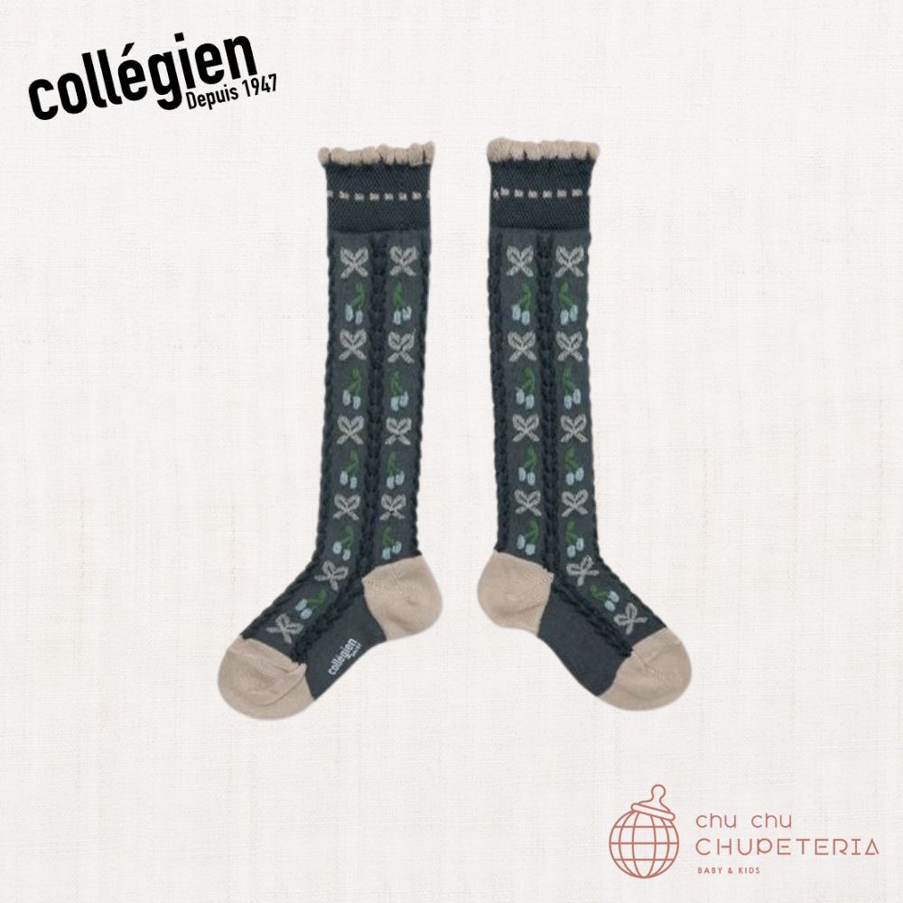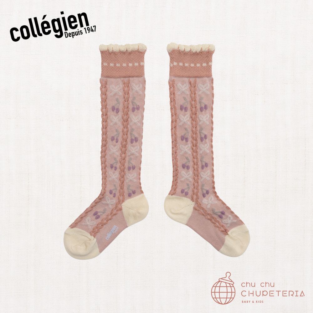 25 新商品 正規輸入 Collegien コレジアン 2651 Cerise Jacquard Cherries and Bows Knee-high Sock チェリー ジャカード さくらんぼ リボン ニーハイソックス 正規品 Made in France フランス製