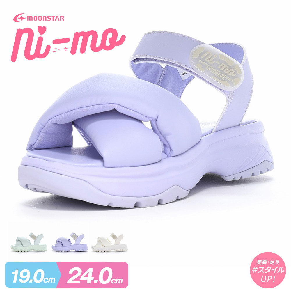 ムーンスター ニーモ キッズ サンダル スポーツサンダル 女の子 かわいい オシャレ ストラップサンダル 脱げにくい 厚底 スポサン ジュニア 女子 ガールズ スタイルアップ見せ もこもこ パープル ホワイト ミント NI-MO CLEAR SANDAL NM J132