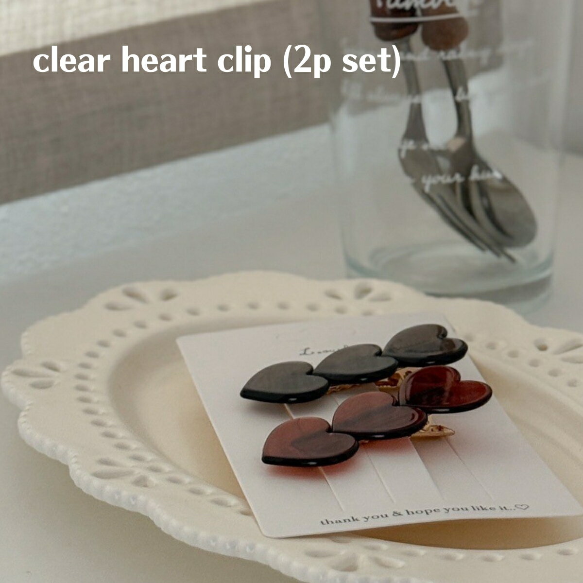 キッズ ベビー 女の子 レディース ヘアアクセサリー clear heart clip (2p set) ヘアクリップ ヘアピン ハート クリア 可愛い 輸入 子供服 春 夏 秋 冬 オールシーズン 送料無料