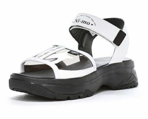 【moonstar】NM J131 WHITE/BLACK CLEAR SANDAL ムーンスター ニーモ Ni-mo ホワイト/ブラック 子供靴 ジュニア 女の子 厚底 クリア サンダル #足元キラかわメイク