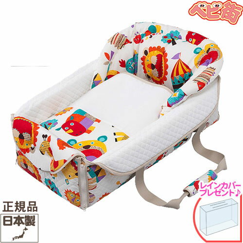 【レインカバープレゼント!】[2-7]バッグdeクーファン ZOO[ホワイト]+rc/ フジキ 日本製 キャリーバスケット ベビーキャリー バックデクーハン おむつ替えマット 5way SoDo