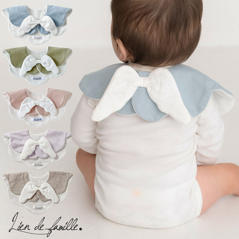 もこもこ天使スタイ スタイ 天使の羽 Lien de famille リヤンドファミーユ女の子 男の子 無地 お出かけ 360度 360 人気 ブランド 円型 ガーゼ ベビー ビブ 赤ちゃん よだれかけ 0歳 1歳 出産祝い 誕生日プレゼント 贈り物 お祝い