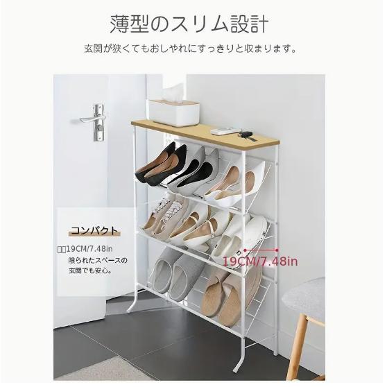 スリムな省スペースシューズラック、木製トップ付き、エントランス用の4段オープン収納 - 簡単組立、大容量で子供と大人に適し、最大15kgまで耐える、
