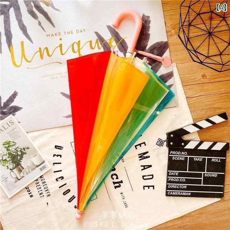 子供用 傘 キッズ 幼稚園 児用 カラフルな レインボー 小学生用 子供用 傘 かわいい 厚型 手 開き ロング ハンドル 赤ちゃん用 透明
