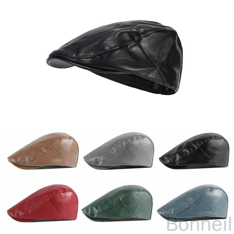 レザー ハンチング 帽子 PU モナコハンチング レディース メンズ キッズ ダンス小物 55-59CM 調整可能 ブラック グレー ブラウン グリーン レッド ヴィンテージ風 シンプル コーディネート コーデ ワンポイント 定番 ベーシック モード系 柔らかい おしゃれで快適な着用感の