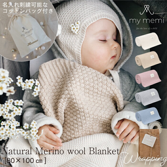 ニット ブランケット あったか ブランケット 厚手 ブランケット 大判 秋 冬 メリノウール ブランケット 天然素材 巾着付き ベビーカー用 お昼寝用 ひざ掛け 出産祝い 男の子 女の子 ギフト おしゃれ マイメミ mymemi 100% Natural Merino Wool Blanket 80x100 | Original |