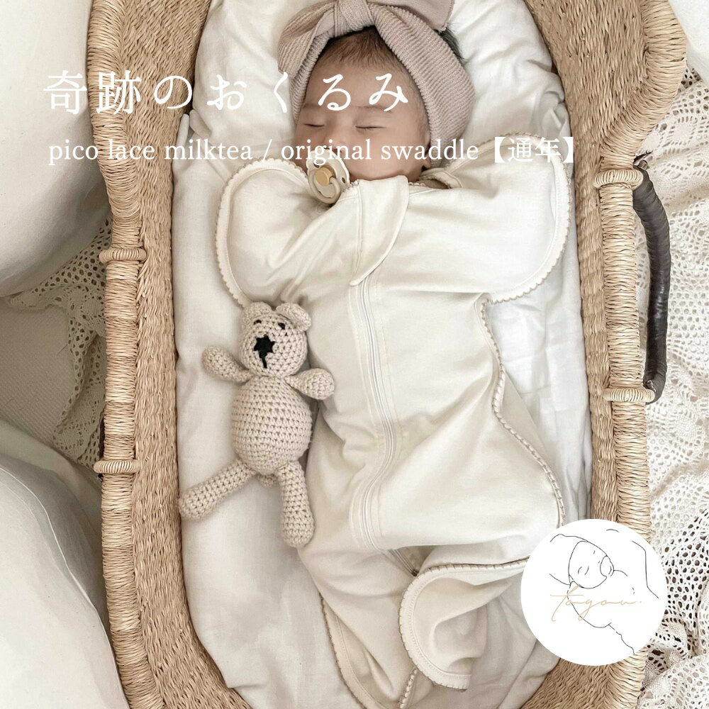 【通年】pico lace milktea / original swaddle スワドル おくるみ ミルクティー ピコレース 赤ちゃん 奇跡のおくるみ 服 ベビー 前開き 夜泣き予防 可愛い ベビー服 韓国 おしゃれ 出産祝い 贈り物 プレゼント ギフト 【toyou 公式】