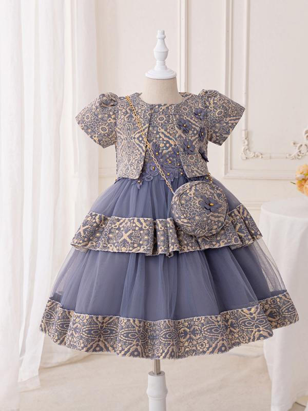 ・カテゴリ: 子供用ドレス・対象年齢: 3〜8歳・対象性別: 女の子・生地加工: プリーツ、酵素洗い・デザイン要素: かわいい、レース、プリンセス、花柄・スタイル: プリンセス・生地名: 化学繊維混紡・主な素材: ポリエステル95%・裏地素材: ポリエステル95%・ドレスタイプ: イブニングドレス・カラー展開: 紺色、スカイブルー、ピンク・サイズ展開: 100cm、110cm、120cm、130cm、140cm・袖タイプ: パフスリーブ
