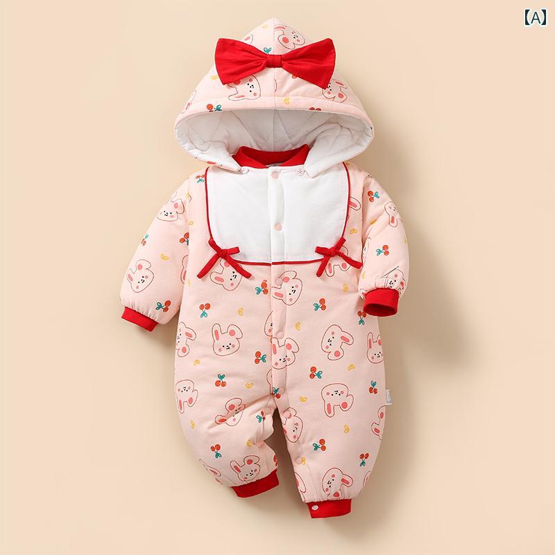 ジャケット ロンパース かわいい 冬 女 赤ちゃん ジャンプ スーツ 厚い 綿 キルティング 暖かい 新生児 パッド入り リトル プリンセス 冬服