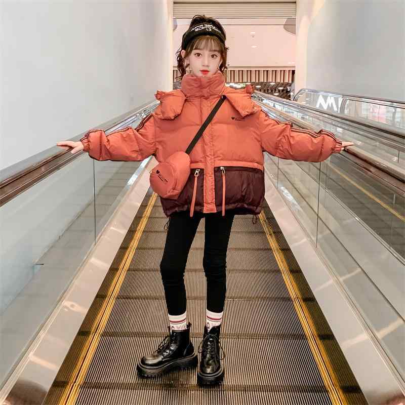 子供用綿入りジャケット ガールズ ダウン風 中綿 コート 厚手 冬物 アウター 8歳以上 抽象柄 ポリエステル 120cm 130cm 140cm 150cm 160cm 170cm
