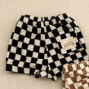 チェッカー パイル ショートパンツ ブラック 短パン モノクロ パンツ 黒 パンツ ボトムス タオル地 子供服 こども服 こどもふく 韓国子供服 80cm ベビー キッズ 男の子 女の子 可愛い お洒落 春 夏 秋 冬