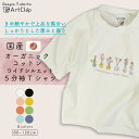 【国産 オーガニックコットン5分袖Tシャツ】 ワイドシルエット 6つの花瓶柄 厚手で丈夫 しなやかで上品なタッチ ハイゲージ40/2天竺 綿100% 花柄 キッズTシャツ 子ども 子供 ベビー プリントTシャツ 日本製