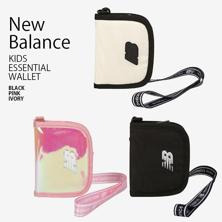 New Balance ニューバランス キッズ 財布 ESSENTIAL WALLET エッセンシャル ウォレット 折りたたみ コインケース ネックストラップ ベルクロ ロゴ ストリート カジュアル ブラック ピンク アイボリー 子供用 男の子 女の子 NK8AEF309U【中古】未使用品