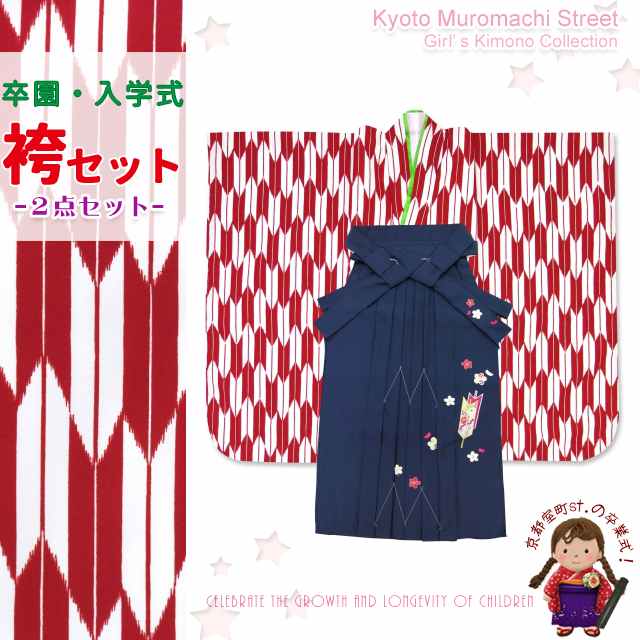 子ども袴セット “卒園式 入学式 七五三” 女の子用 子供着物(合繊)と刺繍袴セット「赤 矢絣」IYY451ysk 購入 販売
