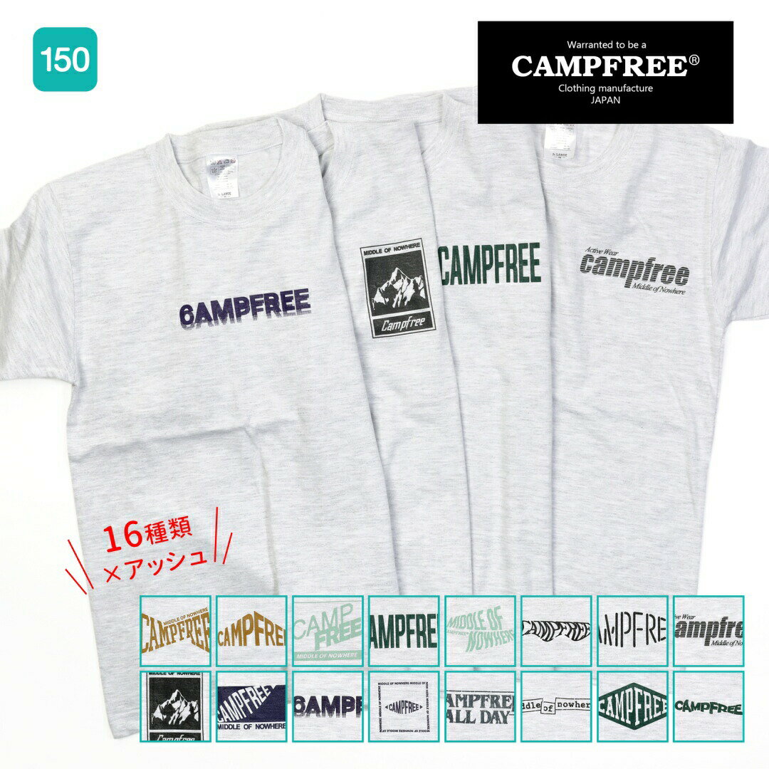 CAMPFREE キャンプフリー Tシャツ ジュニア 150限定 灰色 150 150cm キッズ 半袖 男の子 女の子 兄弟 お揃い 家族 姉妹 おそろい サンプルライン ティーシャツ ティシャツ 綿100% 子供服 夏 秋 冬 半そで プリント コットンtシャツ ロゴTシャツ ブラック メール便 送料無料
