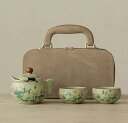 茶器セット 急須セット 陶器 収納バッグ付き 軽量で持ち運びに便利 湯呑みセット お手入れ簡単 和風 中国茶 台湾茶 日本茶tea set コンパクト お出かけ用 アウトドア、ホーム、茶器ギフト (ハンドバッグ,ハイビスカス柄)