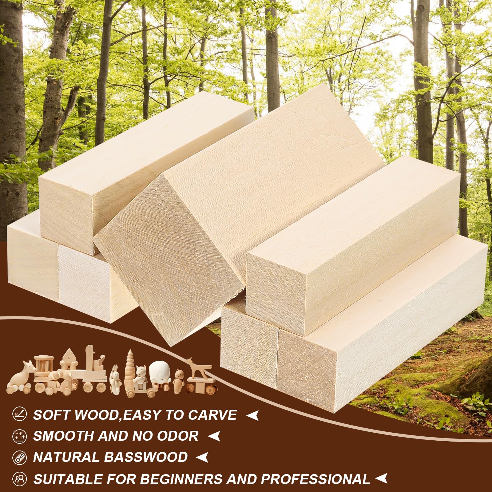 バスウッドカービングブロック24個、3サイズホイットリングウッドバスウッドブロックウッド彫刻ブロックベースウッド、初心者、子供、大人向け。