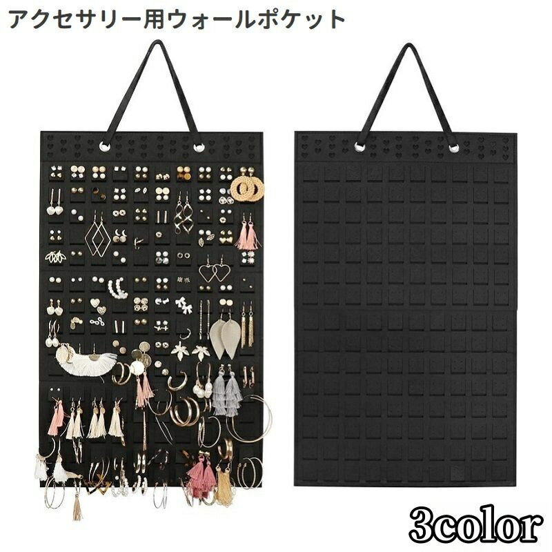 送料無料 ウォールポケット 吊り下げ式 壁掛け フェルト シンプル かわいい アクセサリー ピアス イヤリング 小物 収納 整理 黒 赤 ベージュ ハート