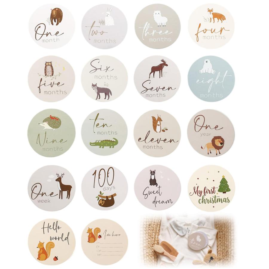 TVETE 月齢フォト 月齢フォトグッズ 【18枚セット】動物のテーマ かわいい漫画 アニマルプリント 新生児 ベビー 成長の記録 記念写真 周年