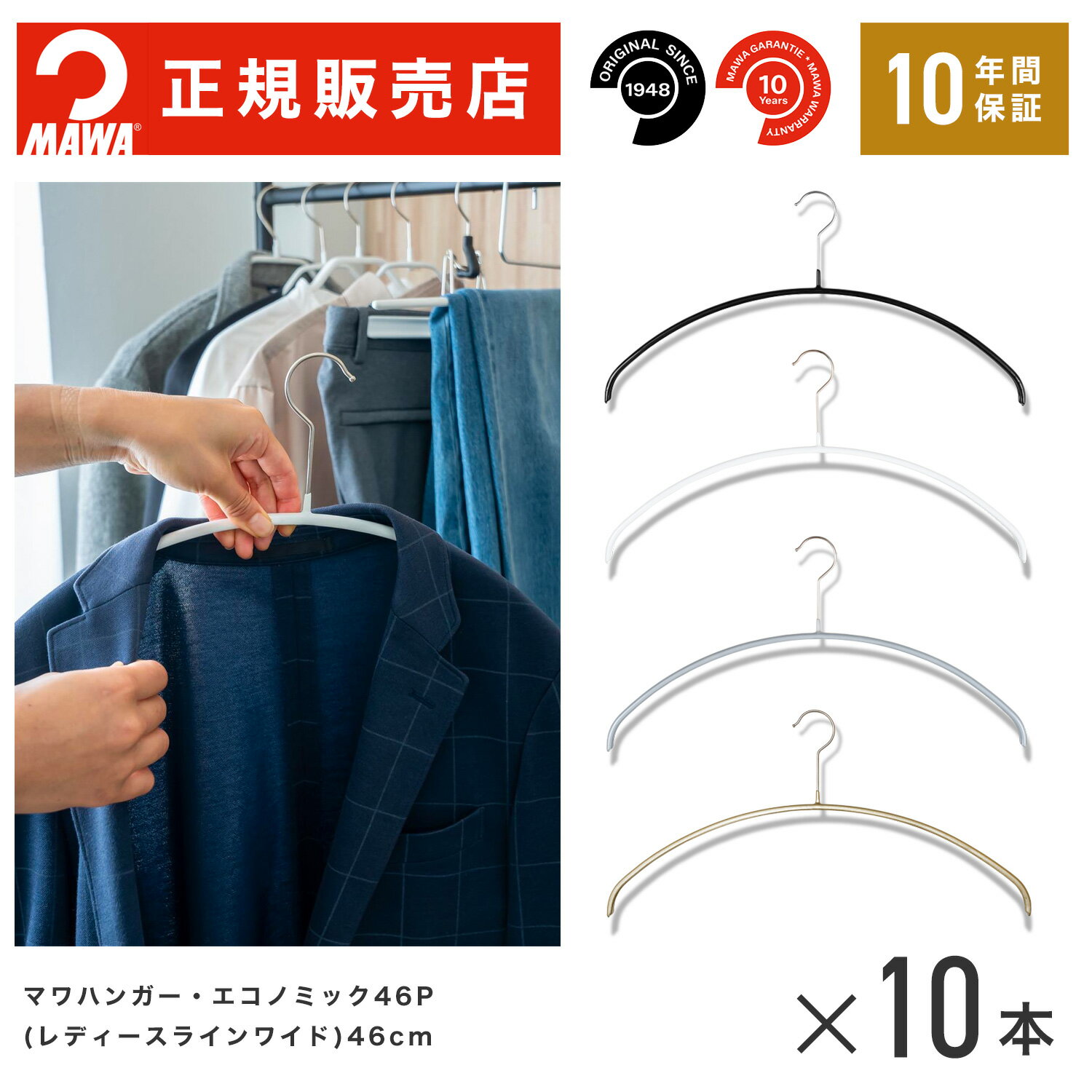 MAWAハンガー (マワハンガー) 【3100】 レディースライン ワイド 10本セット エコノミック 46P メンズ まとめ買い[正規販売店] 省スペースハンガー すべらない 型崩れ防止 跡つかない 肩出ない 10年保証