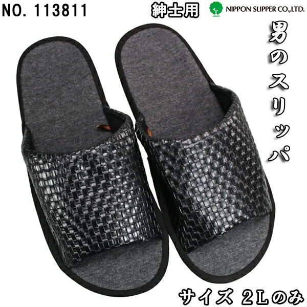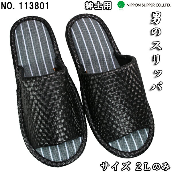 男のスリッパ 113801 ブラック LLサイズ メンズスリッパ ルームシューズ 室内履き 紳士用 オールシーズン ニッポンスリッパ 大き目 大判スリッパ