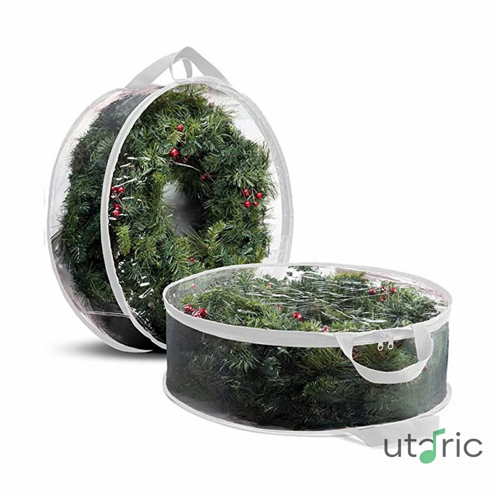 クリスマスリース保存容器 クリスマスリース収納袋 24/30 インチ クリア PVC プラスチック ために ビュー 耐久性のある プラスチック生地 デュアルジッパー付きバッグ ために 休日 人工クリスマスリース リースストレージコンテナ(60x18cm)